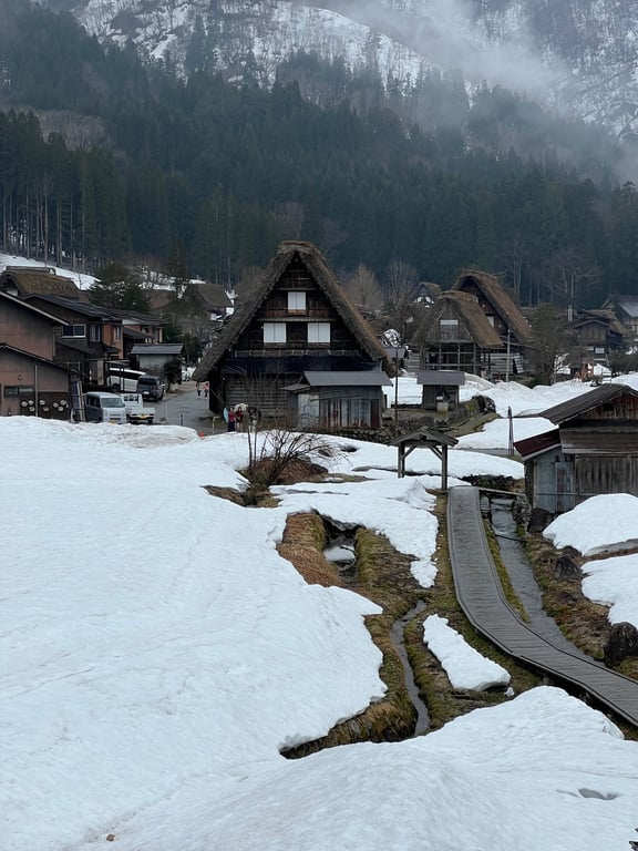 Shirakawago is a small town mostly known for the section of buildings made in a particular unique, historical fashion. It was freezing while we were there, but the village's singular rustic beauty was well worth a visit.